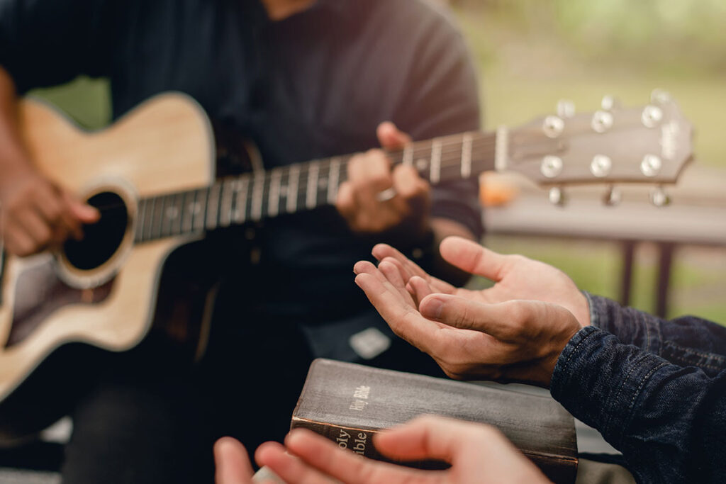 Pesquisadores lembram que, nas Sagradas Escrituras, a música é fundamental na busca da comunhão com Deus, pois serve para o propósito da adoração, por meio dos louvores, e funciona como um canal de edificação e expressão de sentimentos. Ela existe desde a criação (Jó 38.4-7). A Bíblia menciona Jubal como o primeiro músico, sendo apresentado em Gênesis 4.21 como o pai de todos os que tocam harpa e órgão, e registra um hinário próprio, expresso no livro de Salmos. Especialistas destacam que a música foi utilizada por figuras como Davi para louvar e acalmar. Era entoada com acompanhamento de instrumentos de cordas, sopro e percussão a fim de glorificar a Deus e alicerçar a fé.