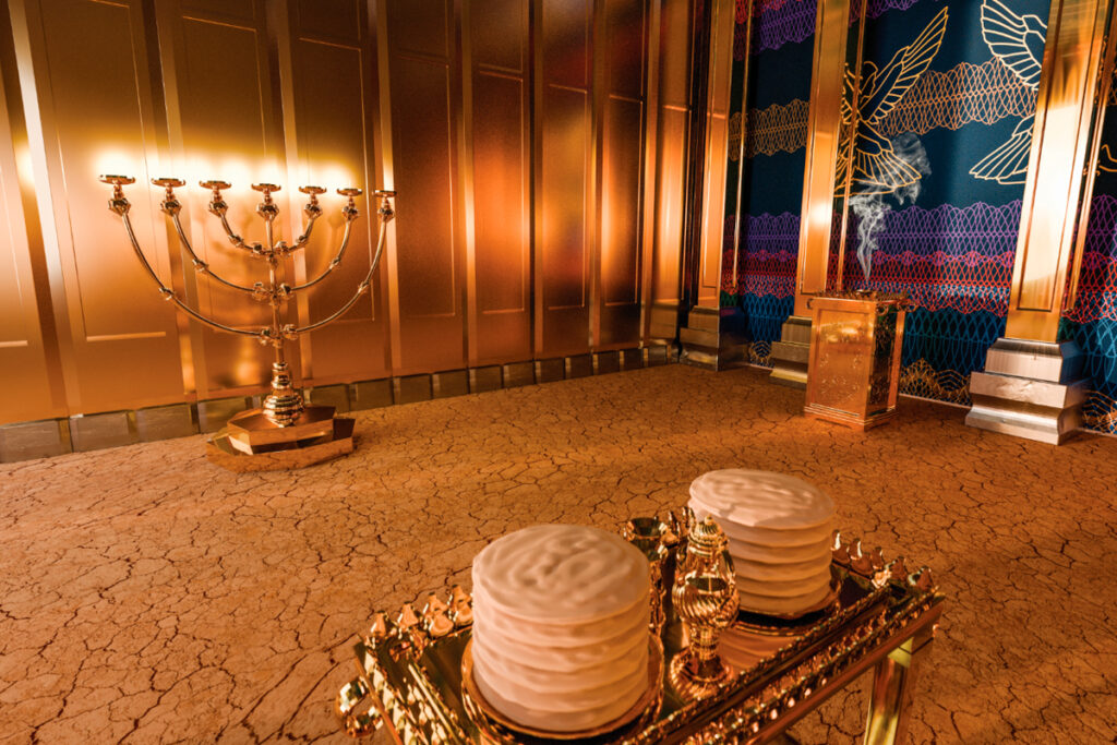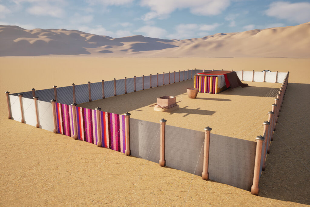 No tabernáculo (ou tenda da congregação), para chegar ao Lugar Santíssimo (Santo dos Santos, ou simplesmente, Santuário), era preciso passar pelo pátio externo e pelo Lugar Santo. O pátio era um espaço aberto ao povo, onde se encontravam o Altar do Holocausto (ou altar das ofertas queimadas), para purificação da má consciência, e a Pia de Bronze – um recipiente litúrgico usado pelos sacerdotes para a purificação ritual antes de entrar na presença de Deus. Passando ao Lugar Santo, havia ali o Candelabro – que simboliza a presença constante do Altíssimo (e Sua iluminação); no lado oposto, a Mesa dos pães da Presença (da comunhão do povo do Senhor) e, defronte à cortina que dividia o Lugar Santo do Santo dos Santos ficava o Altar de Ouro (ou altar de incenso, que representa a adoração).