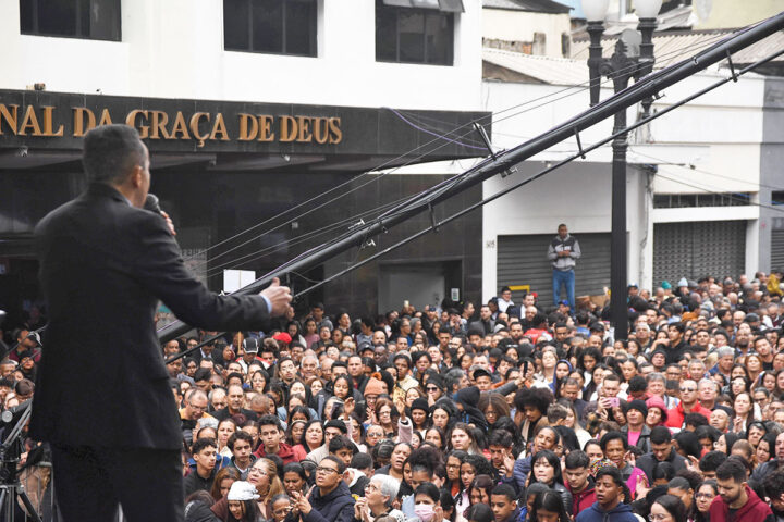 O dia mal tinha começado quando os primeiros louvores tomaram conta da esquina da Avenida São João com a Rua dos Timbiras, em São Paulo (SP). Era 9 de julho, feriado estadual que lembra a Revolução Constitucionalista de 1932, e a cidade vivia um momento especial: o primeiro grande encontro promovido pela Igreja Internacional da Graça de Deus (IIGD) na região central da capital paulista desde o fim da pandemia. Caravanas chegavam de várias cidades e famílias, com pessoas de todas as idades, ocupavam a frente e o interior da sede estadual da Igreja da Graça, para celebrar, durante sete horas, o Show da Fé Juventude, com louvores, pregação da Palavra, danças, orações e testemunhos.